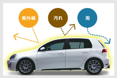 • 紫外線等の攻撃から塗装を守って、自動車の価値が下がるのを防ぎます。