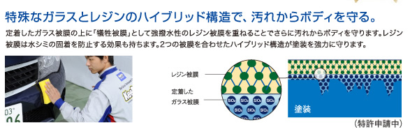 塗装の上に配置するコーティング被膜は、塗装の身代わりとなって紫外線・酸性雨・黄砂を含んだ雨を受け、大事な塗装の代わりに傷み汚れてくれます。